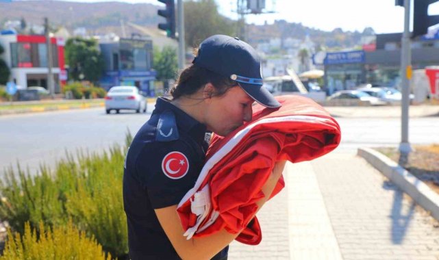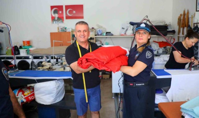 Muğla'nın Bodrum ilçesinde dev Türk bayraklarını yıllardır ücretsiz tamir eden terzi Ali Akay'a Bodrum Belediyesi özel bir teşekkür ederek, plaket verdi.