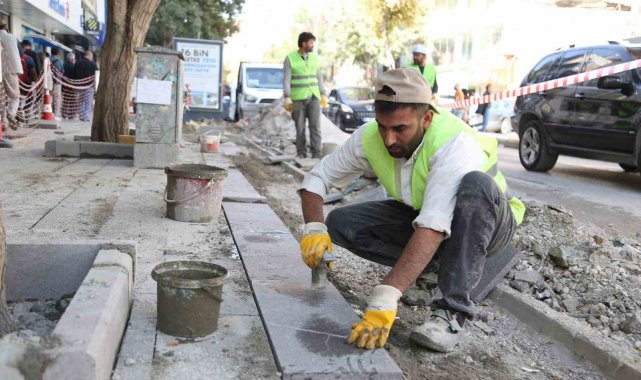 Van Büyükşehir Belediyesi, kent merkezinin en işlek noktalarından biri olan Cumhuriyet Caddesi'nde kaldırım yenileme çalışmalarını aralıksız sürdürüyor.