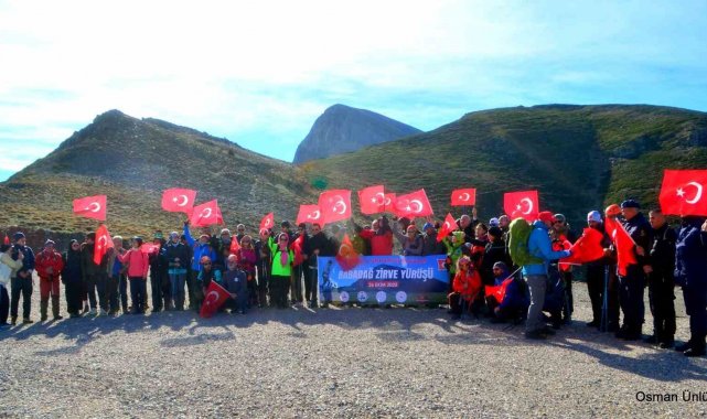 Denizli'de, Babadağ'ın 2308 m. rakımlı zirvesine tırmanan her yaştan vatandaş, Cumhuriyetin 102. Yıldönümünü zirvede İstiklal Marşını hep bir ağızdan okuyarak kutladı.