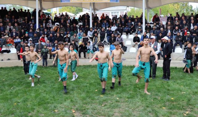 Güreşlerde iki minik güreşçinin alandaki hareketleri ve müsabakaları ise ilgi odağına döndü.