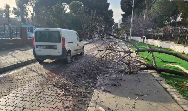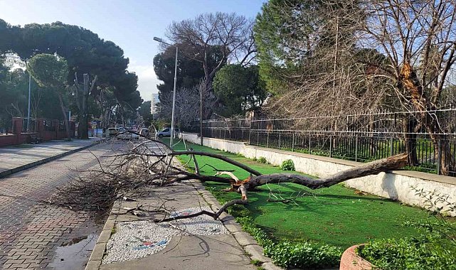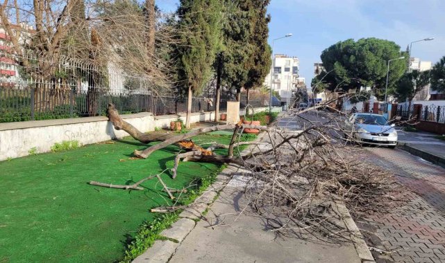 Aydın'ın Efeler ilçesinde eski müzenin bahçesindeki çürüyen ağaç gövdesinden kırılarak yola doğru devrilirken, olayda kimsenin yara almaması teselli kaynağı oldu.