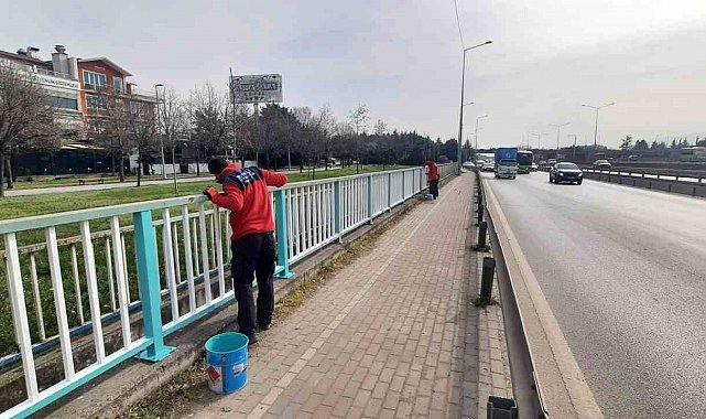 İzmit D-100 Karayolu'ndaki demir korkulukların onarım, boyama ve yenileme çalışmalarıyla şehre estetik kazandırıldı.