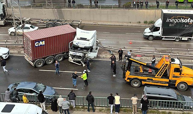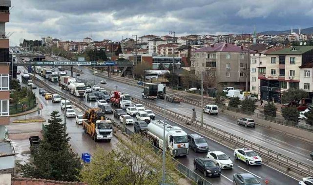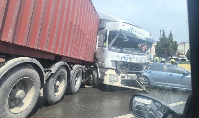 Kocaeli'nin Derince ilçesinde kontrolden çıkarak makaslayan tır, bariyerleri aşıp karşı şeride geçti. İki otomobilin daha karıştığı kaza sebebiyle D-100 kara yolunda kilometrelerce araç kuyruğu oluştu.