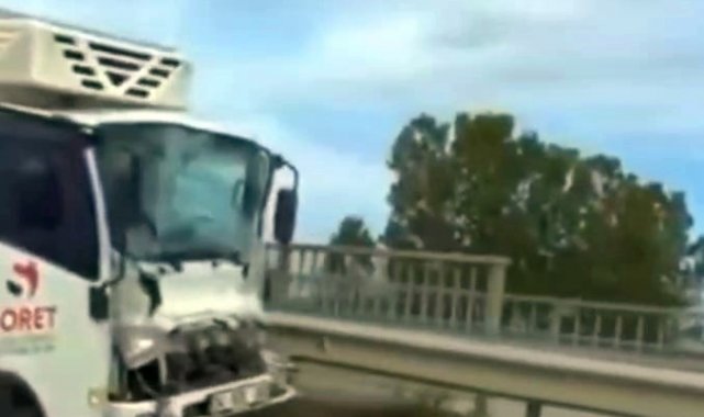 D-100'de kontrolden çıkan kamyonet bariyerlere çarptı: 2 yaralı