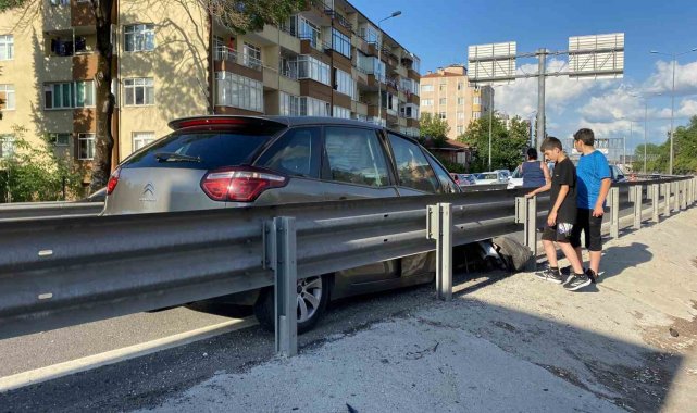 D-100 karayolunun Kocaeli geçişinde kontrolden çıkan otomobilin bariyerlere çarpması sonucu meydana gelen kazada sürücü yaralandı.