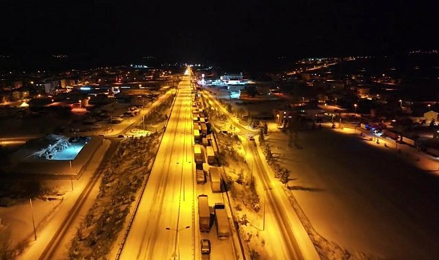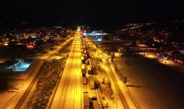 Çankırı'nın Çerkeş ilçesinde, İstanbul'u Karadeniz'e bağlayan D-100 karayolu, yoğun kar yağışı ve buzlanma sebebiyle ulaşıma kapandı. İstanbul istikametinde seyir halinde olan araçlar, zemini kaplayan kar ve buzlanma sebebiyle saatlerce mahsur kaldı. Uzun kuyruklar oluşan kara yolunda sürücüler kontak kapatırken, vatandaşlar belediyenin tahsis ettiği kültür merkezinde ihtiyaçlarını giderebildi. Ekipler, ulaşımın yeniden sağlanabilmesi için çalışmalarını sürdürüyor.