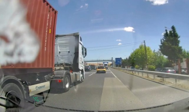 Tekirdağ İstanbul istikameti D-110 Karayolu üzerinde seyir halindeki bir tır sürücüsünün tehlikeli sürüşü trafikte paniğe sebep oldu. 34 HFR 687 plakalı tırın, trafikteki araçlara selektör yaparak taciz edici şekilde ilerlediği anlar araç kamerasına yansıdı.