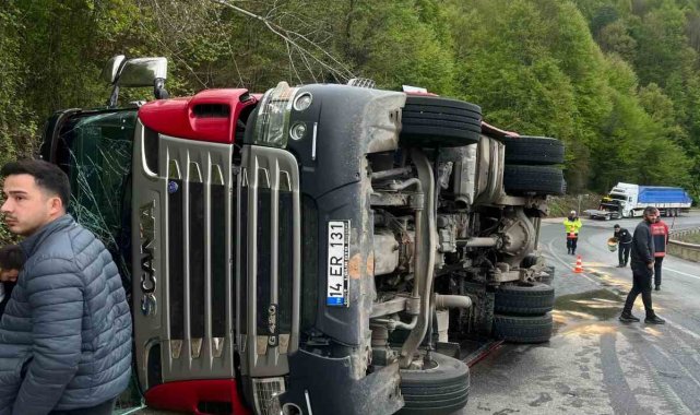 Kaza, akşam üzeri Akyazı-Mudurnu D-140 kara yolu Reşadiye mevkiinde meydana geldi. Edinilen bilgiye göre, E.K. kontrolündeki 14 ER 131 plakalı tır, viraja girdiği esnada sürücüsünün kontrolünden çıkarak devrildi. Çevredekilerin durumu 112 Acil Çağrı Merkezi'ne bildirmesi üzerine bölgeye itfaiye, sağlık ve jandarma ekipleri sevk edildi. Adrese ulaşan ekiplerce araç içerisinden çıkarılan yaralı sürücü E.K., yapılan ilk müdahalesinin ardından hastaneye kaldırıldı.