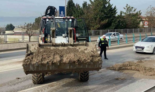 D100'de kamyondan dökülen çamur trafiği altüst etti: 6 bin 584 TL ceza kesildi