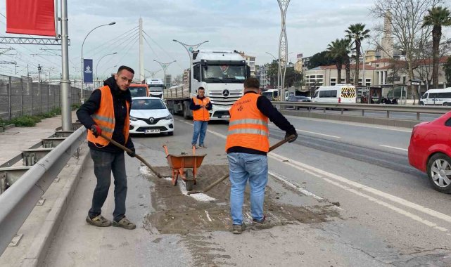 Yola dökülen çamur sebebiyle trafikte aksamalar meydana geldi. Metro inşaatında getirilen kepçe ve karayolu ekipleri yolu temizlerken trafik eski seyrine döndü.
