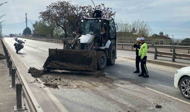 Kocaeli D100 Karayolu'nda kamyondan dökülen çamur trafiği aksamasına sebep oldu. Polis ekiplerince durdurulan sürücüye 6 bin 584 TL ceza kesilirken yol temizlenmesi ile trafik eski seyrine döndü.