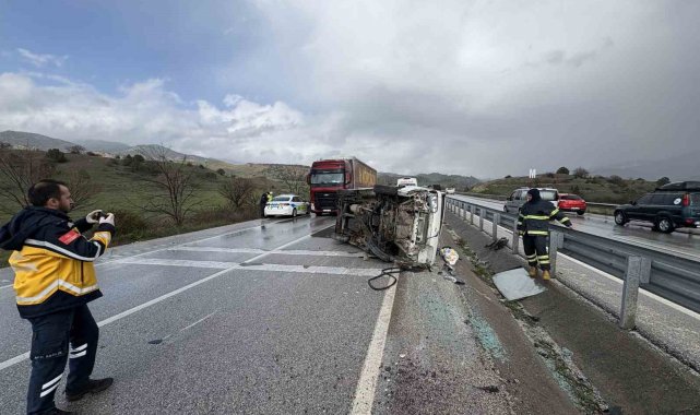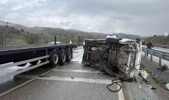 Kastamonu'nun Tosya ilçesi D100 karayolunda devrilen minibüsün sürücüsü yaralandı.