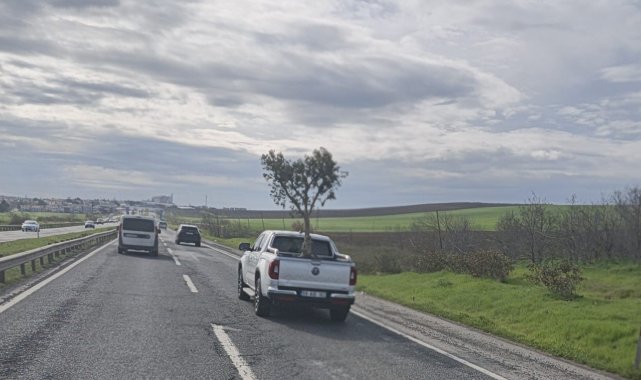 Tekirdağ'da E-5 kara yolunda seyir halindeki bir pikabın kasasına yerleştirilen zeytin ağacının taşınma şekli ilginç görüntü oluşturdu. Silivri istikametinden Çorlu yönüne ilerleyen 59 AID 162 plakalı pikap üzerindeki zeytin ağacı taşıdığını görenler şaşırdı. Pikap kasasında köküyle birlikte taşındığı görülen zeytin ağacı trafikte ilerlerken, yoldan geçen bazı sürücüler o anları cep telefonu kameralarıyla kaydetti.