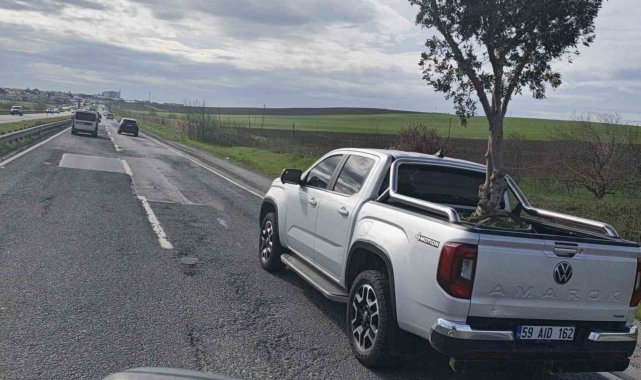 Uluslararası E-5 (D-100) kara yolunda İstanbul Silivri istikametinden Çorlu yönüne seyir halindeki bir pikap kasasında zeytin ağacı taşıdığını görenler hayrete düştü.