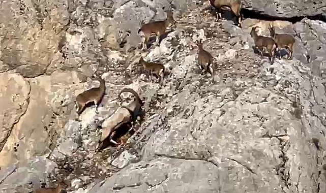Dağ keçileri cep telefonu kameralarına yakalandı