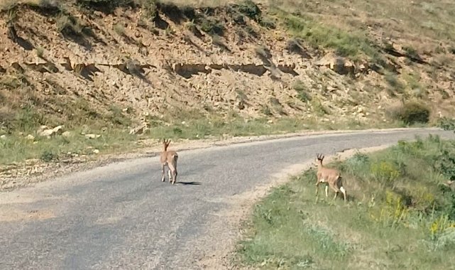 Malatya'nın Yazıhan ilçesine bağlı İriağaç Mahallesi'nde bir vatandaş, arazide dolaşan dağ keçilerini cep telefonu ile görüntüledi. 3 yaban keçisini kayıt altına alan vatandaş, "Ne kadar güzelsiniz" diyerek bu anları sosyal medya hesabından paylaştı.