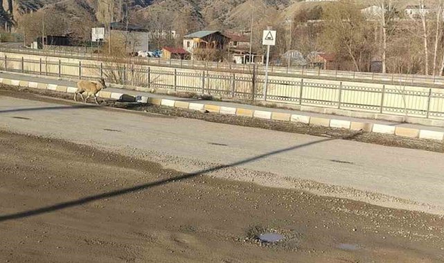 Erzurum'un Uzundere ilçesinde sabah saatlerinde ilçe merkezine kadar inen dağ keçisi, işe gitmek için evlerinden çıkan vatandaşlarla burun buruna geldi.