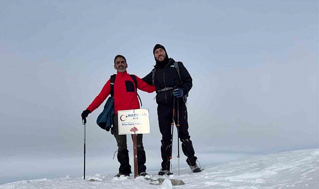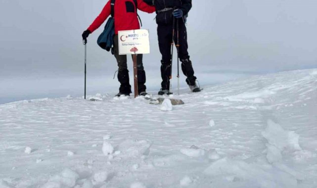 Dağcılar 2 bin 978 rakımlı Mereto Dağı'na çıkmak için zorlu yolculuğa koyuldu. Dağcılar yer yer 1 metreyi bulan karda 6 saatlik zorlu tırmanışın ardından zirveye ulaşarak hatıra fotoğrafı ve video çekti.