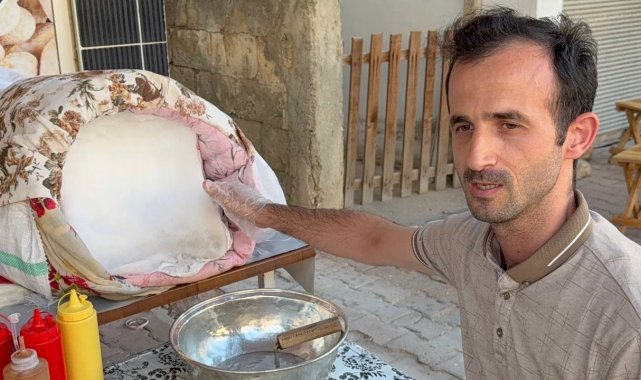 Adana'nın Kozan ilçesinde bir esnaf, dağdan getirdiği karı, pamuk, yorgan ve çuvallara sararak erimesini önledi, portakal ve vişne şuruplarıyla tatlandırıp satmaya başladı.
