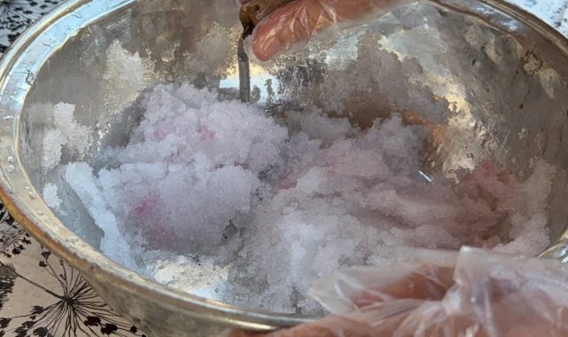 Karın erimemesi için özel bir yöntem kullandıklarını belirten Çelik, "Kozan çok sıcak olduğu için ilk defa böyle bir şey denedik. Karın hava almaması gerekiyor, bu nedenle pamuk yorgana sarıp çuvalla etrafını kapattık. Böylece kar erimeden muhafaza ediliyor. Üzerine portakal ve vişne şurupları dökerek vatandaşlara ikram ediyoruz. Tabağını 50 TL'den satıyoruz. Farklı bir serin lezzet oldu" dedi.