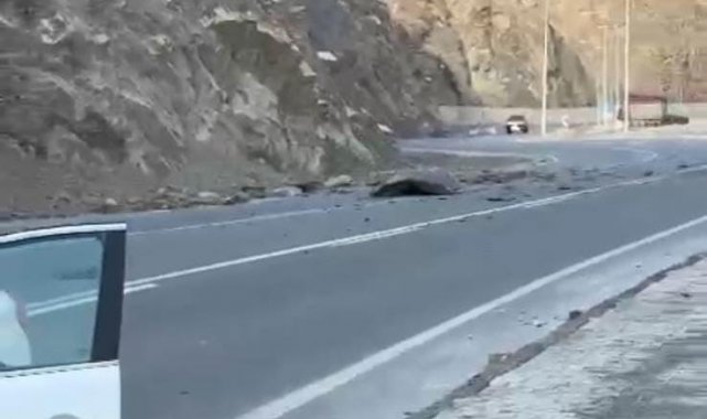 Hakkari'de dağdan kopan kayalar bir araca düşerek büyük maddi hasara yol açtı.