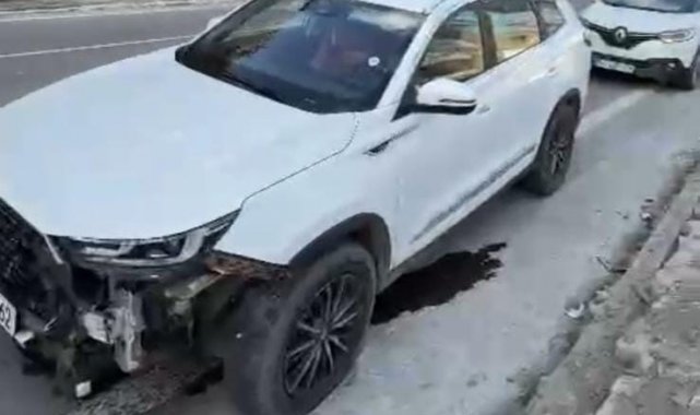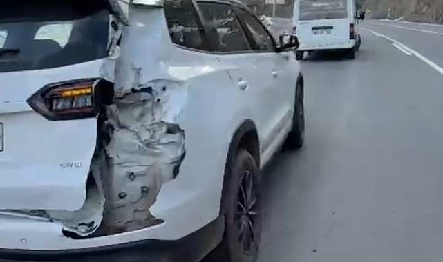 Yolda ilerleyen diğer sürücüler, düşen kayaları ve hasar gören aracı cep telefonlarıyla görüntüledi.