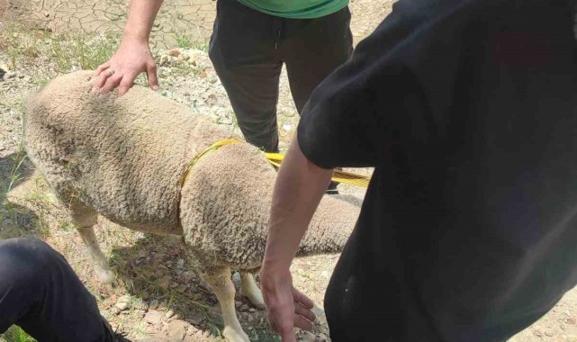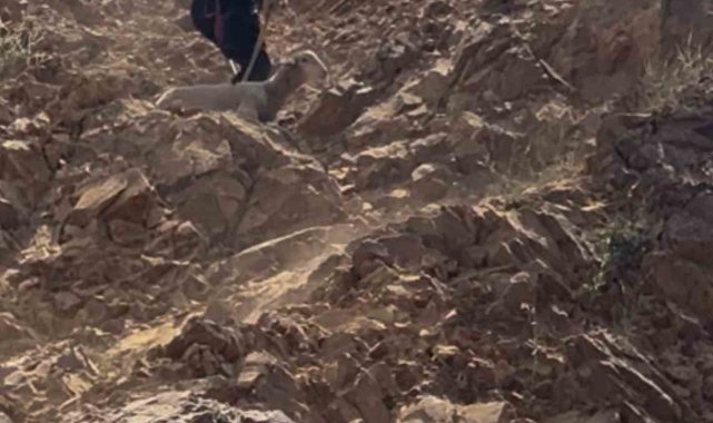 Dağlık alanda mahsur kalan kurbanlık koyunu ekipler kurtardı