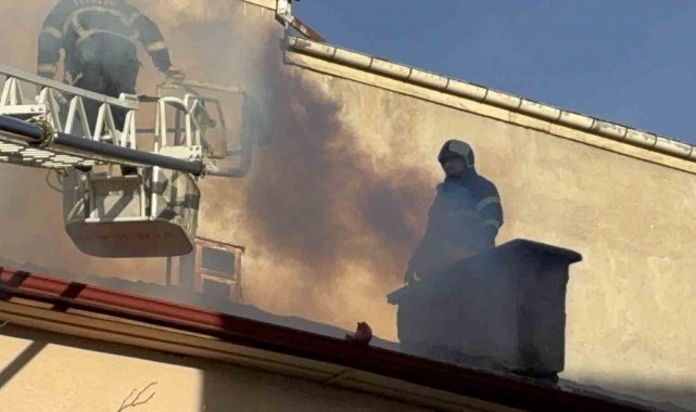 Daireler tahliye edildi, itfaiye çatıdan yangına müdahalede bulundu