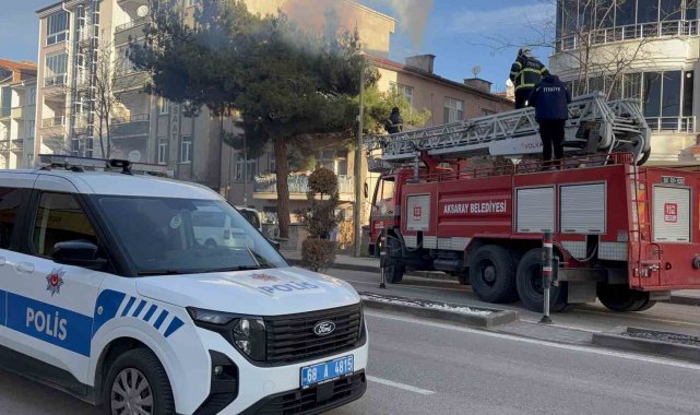 Aksaray'da 3 katlı apartmanın bacasında çıkan yangın paniğe neden olurken, polis ekiplerinin daireleri tahliye ettiği yangına itfaiye bacadan müdahale etti.