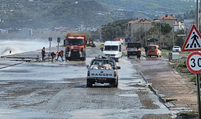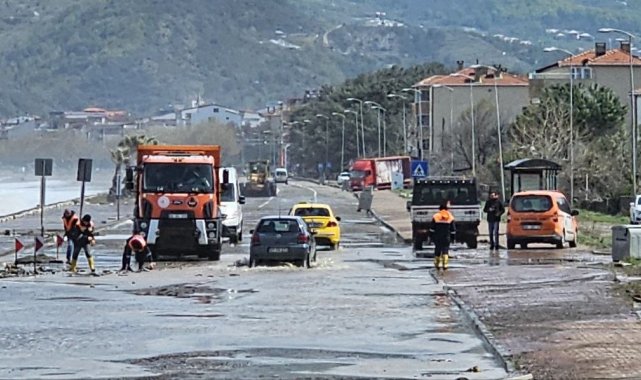 Kastamonu'nun Cide ilçesinde etkili olan fırtına sırasında dalgalar sahili dövdü. Dalgalar sebebiyle oluşan sahil yolunda ekipler çalışma başlattı.