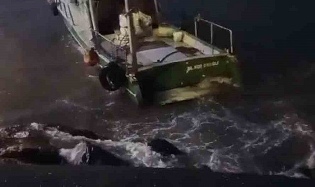 Dalgalarla savrulan balıkçı teknesinin kurtarılma anları ortaya çıktı