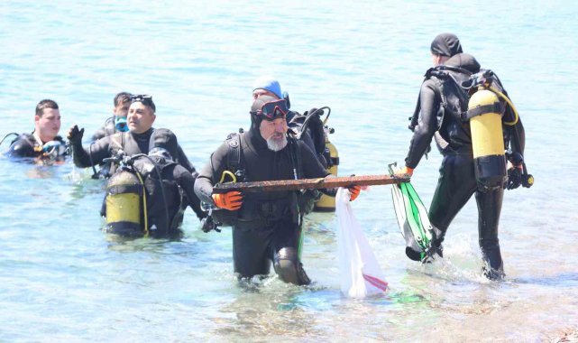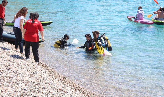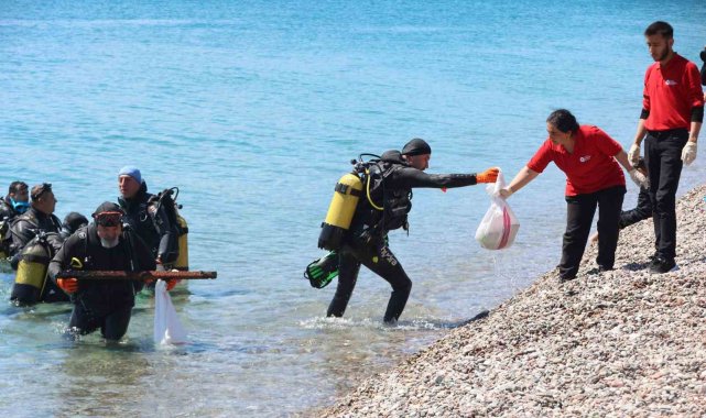 Dalgıçlar Konyaaltı Sahili'nden 80 kilogram atık çıkardı