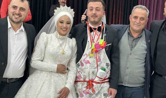 Törende damat Taş'a ilk olarak arkadaşları mutfak önlüğü taktı. Sonra ise arkadaşları damada bulaşık deterjanı, bulaşık süngeri ve bebek emziği taktı. Takıya şaşıran damat ile gelin, arkadaşlarına teşekkür etti. Düğün sonunda mutlu çifti konuklar düğün salonunda alkışlarla yolcu etti.