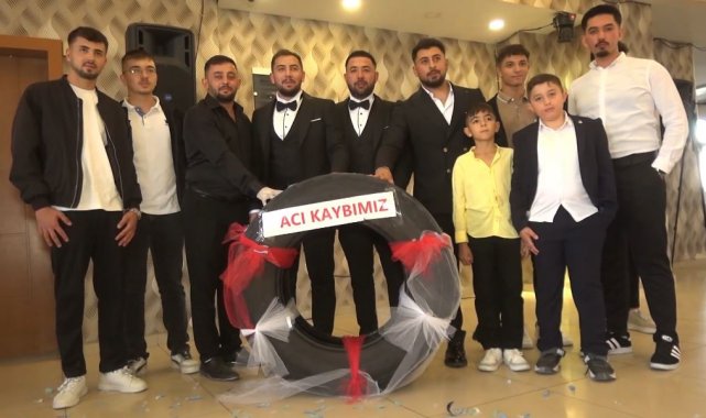 Lastik alma fikrini öne süren Çağrı Demirkaynak ise, "Damat arkadaşımızı çok seviyoruz. Onun bu özel gününde unutulmaz bir hatıra bırakmak istedik. Tır lastiği sürprizi aklımıza geldi. Damat da bunu güzel bir şekilde karşıladı. Ömür boyu mutluluklar diliyoruz" dedi.