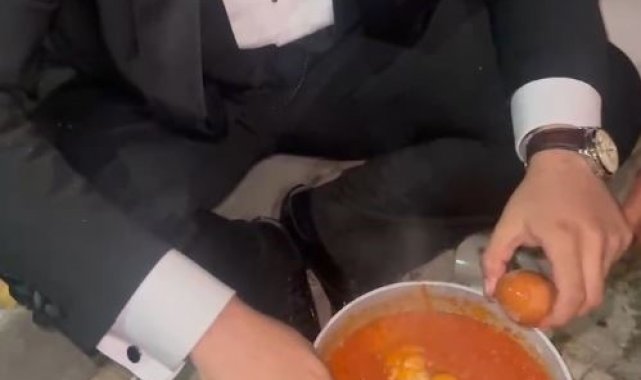 Damadın menemen şovu: Yumurtayı arkadaşının kafasında kırdı