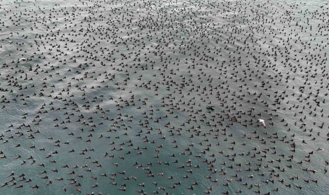 Havadan kaydedilen görüntüler, karabatakların sürü davranışını ve Marmara Denizi'nin kış aylarındaki ekolojik yapısını net şekilde ortaya koydu. Uzmanlar, bu tür doğa olaylarının bölgenin biyolojik çeşitliliği açısından önem taşıdığına dikkat çekiyor.