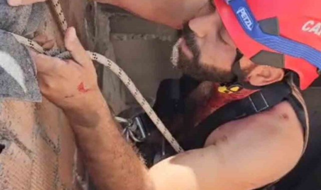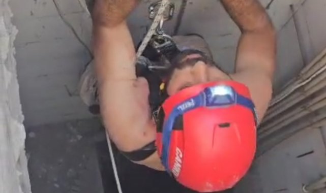 Damdan havalandırma boşluğuna düşen boyacıyı itfaiye ekipleri kurtardı