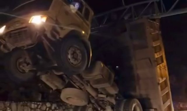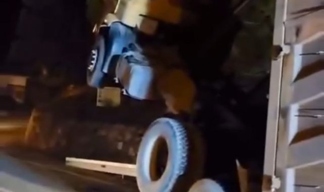 Bolu'nun Göynük ilçesinde seyir halindeyken damperi açık kalan kamyon, yol üzerindeki KGYS direğine çarptı. Askıda kalan kamyonda sıkışan sürücü, itfaiye ekiplerinin çalışması sonucu kurtarıldı.