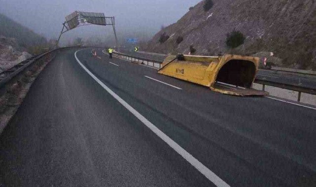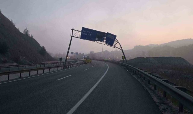 Damperi açılan tır trafik levhasına çarptı: 1 yaralı