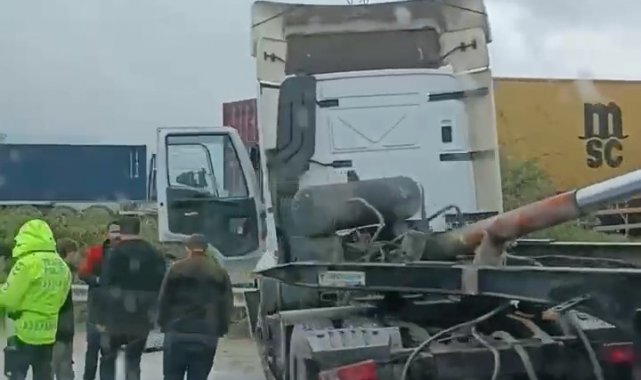 Bursa'nın Gemlik ilçesinde seyir halindeki tırın damperi açılarak üst geçide çarptı. Kaza sonrası trafik tek şeritten ilerlerken, tır çekici yardımıyla yoldan kaldırıldı.