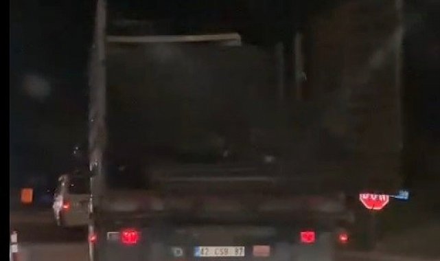 Damperinin arka kapağı açık şekilde seyreden kamyonun sürücüsüne ceza