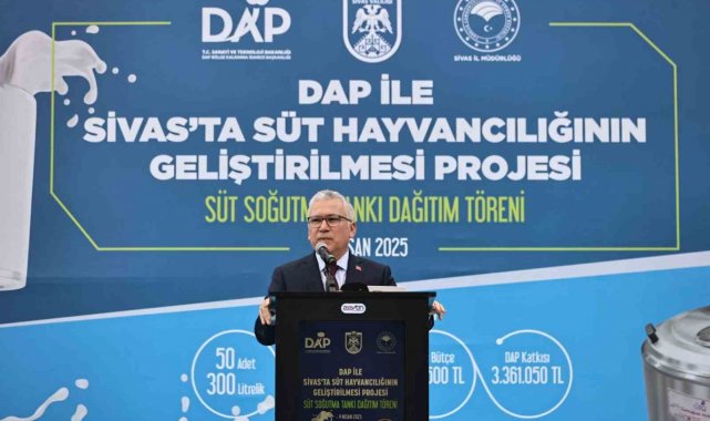 Sivas Vali Dr. Yılmaz Şimşek de "Tarım ve hayvancılık alanında en büyük destek aldığımız kurumlar arasında DAP Bölge İdaresi gelmektedir. Dahil olduğumuz 2016 yılından bu yana 94 proje ile 650 milyon lira destek aldığımızı memnuniyetle ifade etmek istiyorum. Desteklenen 94 projenin 78'i tarım ve hayvancılık alanında olmuştur. Bütçe olarak ise 610 milyon lira tarım ve hayvancılık projelerine verilmiştir. DAP Bölge Kalkınma İdaresinin her zaman Sivas çiftçisinin yanında olmaya devam edecektir. Valiliğimiz ve İl Özel idaremiz olarak İl Tarım Müdürlüğünün hazırladığı tüm projelerini desteklemeye devam edeceğiz. Bu kapsamda süt toplama faaliyeti yapan ve bakanlığımızdan onaylı işletme belgeleri olan Damızlık Sığır Yetiştiriciler Birliği üyelerine verilmek üzere 50 adet 300 litrelik ve 10 adet 1000 litrelik süt soğutma tankı dağıtımı gerçekleştireceğiz. Süt tankı alan tüm üreticilerimize hayırlı ve bereketli olmasını diliyorum" dedi.