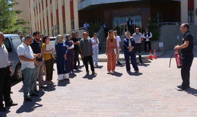 Eğitimlerin ardından hastane bahçesinde yangın tatbikatı yapılarak, personelin acil durumlara müdahale becerileri uygulamalı olarak ise test edildi.