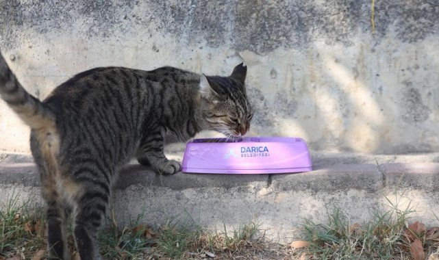 Darıca'da belediye ekiplerince sokak hayvanlarının beslenme ve su ihtiyacını karşılamak amacıyla belirlenen noktalara mama ve su kapları bırakıldı.