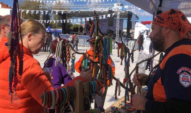 Muğla'nın Datça ilçesinde gerçekleştirilen Geleneksel Datça Badem Çiçeği Festivali, yoğun bir katılımla devam ederken, acil durumlarda kullanılan ve 3 metre ipe dönüşebilen paracord (paraşüt ipi) bileklikler, festivalin alanının ilgi odağı oldu.