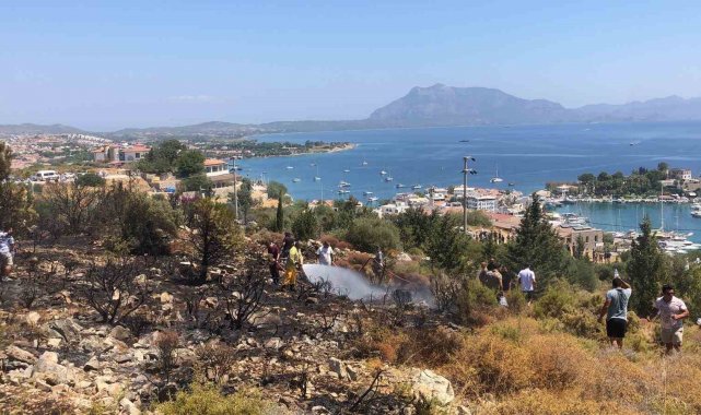 Muğla'nın Datça ilçesinde makilik alanda çıkan yangına havadan ve karadan müdahale edilerek yangın kontrol altına alındı.