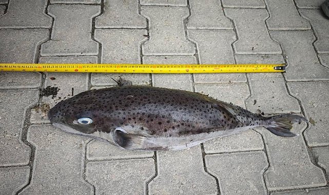 Muğla'nın Datça ilçesi Mesudiye Mahallesi'ndeki Hayıtbükü Sahili'nde temizlik çalışması yapan belediye ekipleri, şiddetli rüzgar nedeniyle kıyıya savrulmuş bir balıkla karşılaştı. Yapılan incelemede, karaya vuran balığın zehirli türlerden biri olan balon balığı olduğu belirlendi. Ekiplerin gerçekleştirdiği ölçümlere göre 68 santimetre uzunluğunda olduğu tespit edilen balon balığının, boyutuyla şimdiye kadar Datça kıyılarında tespit edilen en büyük balon balığı olduğu bildirildi. Tehlikeli türler arasında yer alan ve insanlar için ciddi risk oluşturabilen balon balığı, belediye ekipleri tarafından kontrollü şekilde imha edildi.