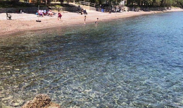 Muğla'nın Datça ilçesinde hava sıcaklıklarının yükselmesi ile birlikte sahillerde hareketlenme başlarken, bazı vatandaşlar denize girdi.