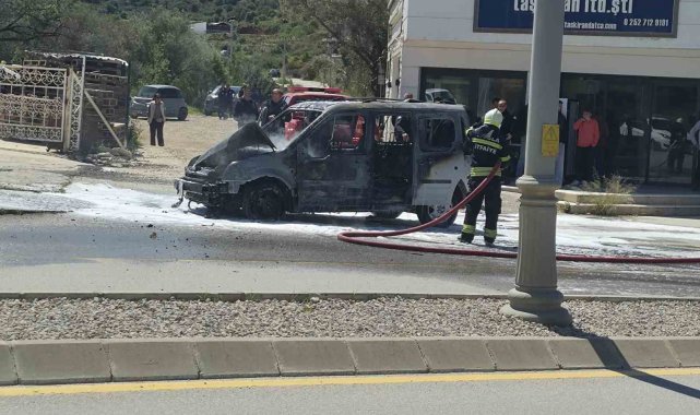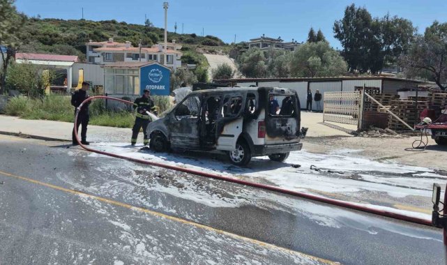 Muğla'ın Datça ilçesinde alevlere teslim olan ticari araç küle döndü.