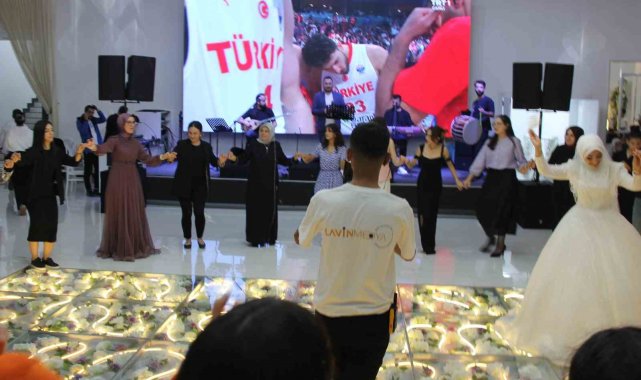 Mert Bozkurt ise, hem halay çektiklerini hem de milli maçı takip ettiklerini ifade etti. Bozkurt, "Hem düğünümüzü yapıp hem de milli maçımızı izliyoruz. Basketbol maçına da ilgimiz var zaten. Hem halay çektik hem de maçımızı izledik. Düğünde hem oynamak hem de maçı izlemek gurur verici" ifadelerini kullandı.